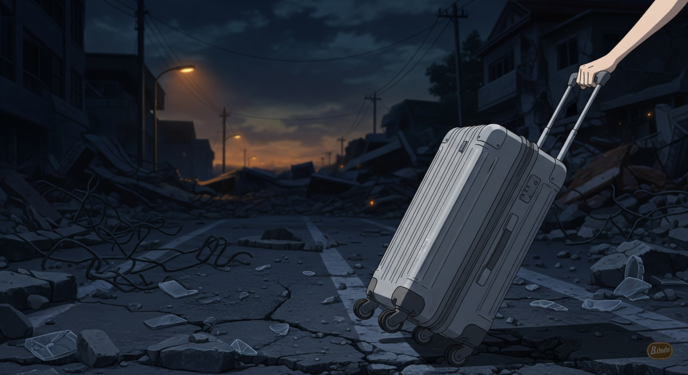 夜が深まる。人々の話し声は途切れず、余震のたびに床がかすかに震えた。私はここで待つしかない。持ち主が再び取っ手を握るときまで。中に残された彼女の本当に大切なものとともに。