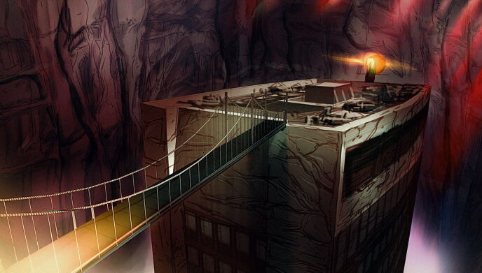 しばらく壁にぶら下がったままの尾地。下を見る。足場も一切なく、底なしの闇に落ちれば命はないということを確認した。彼はのこった右半身の力のみでこのビルを登らなければならなかった。その高さ約五〇メートル。