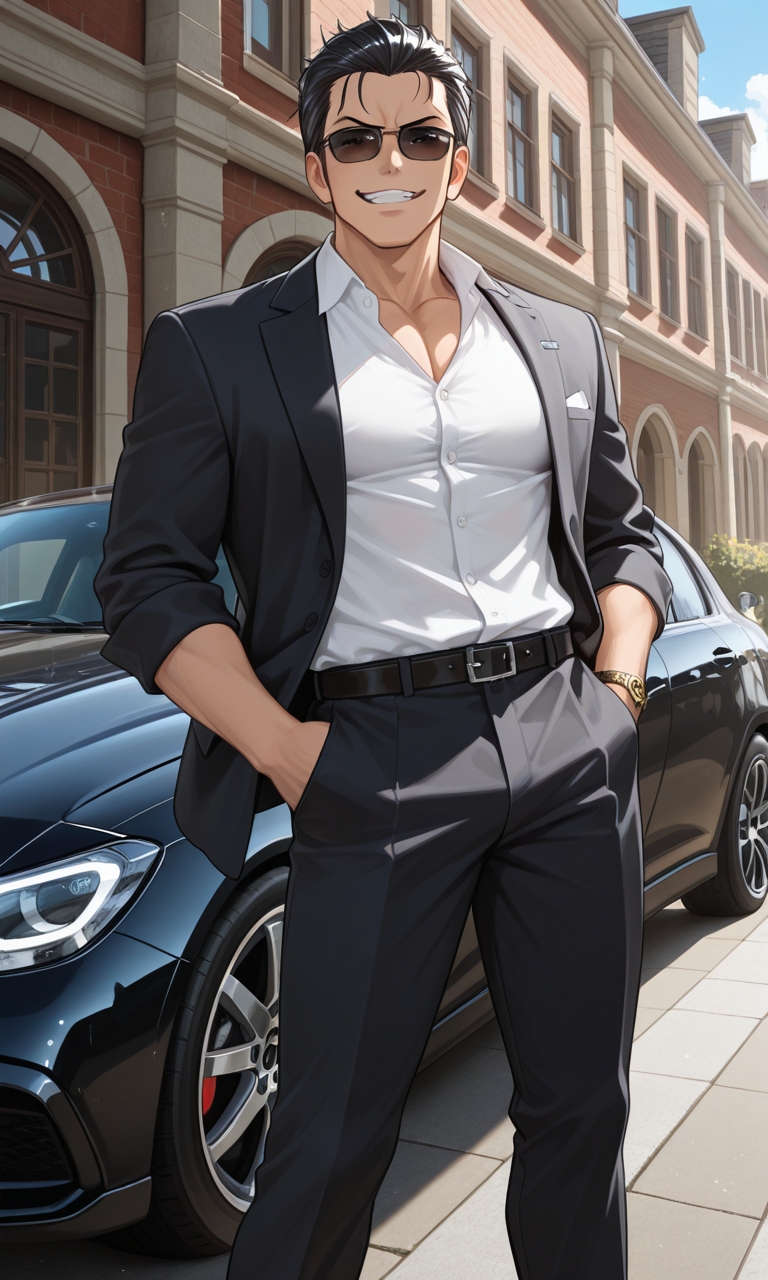 【シーン1:静止する王子と咆哮する黒いドイツ製高級車】