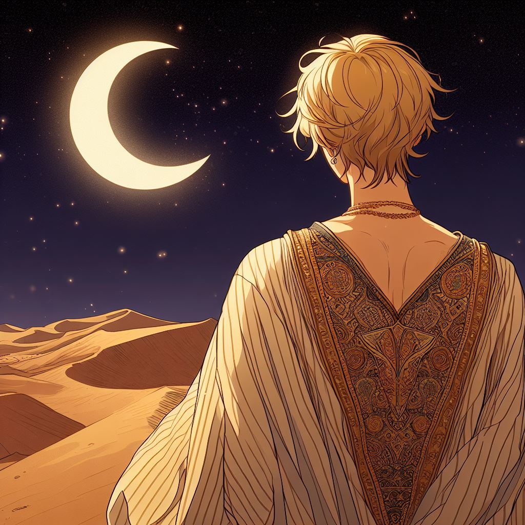 ほの明るく光る三日月が、近くに建物もなければ、オアシスもないという絶望を突きつけてくる。