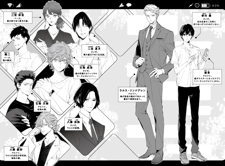 「そこに書かれてるとおり《バーチャルアルファ》だよ。リアルのアルファはまだ怖いっていうオメガのために作られたアプリなんだ。一人で発情期を過ごすオメガが、少しでもつらくなくなるようにって開発されたらしくてね――そうだ! 奏くんも使ってみない?」