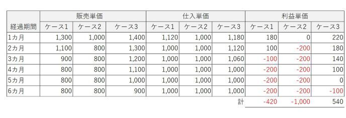 i2の仕入単価は1,000JD/kgなので、2.5カ月後から赤字が発生することになる。」