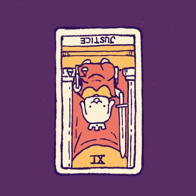 現れた絵柄は……逆さまになった〈Justice〉