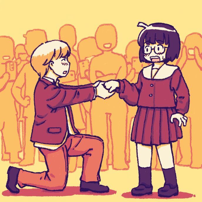 キッカケは、体育倉庫に閉じ込められた事件から始まった。校長先生に問い詰められ、とっさに誤魔化した。二人は退学の危機を乗り越える為に本当に結婚することにした。