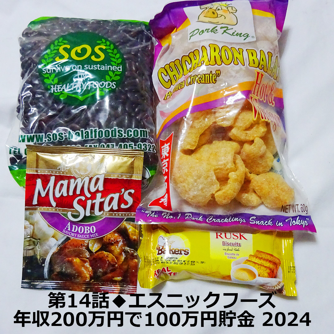 買ったのは、レッドキドニービーンズ430円、豚皮スナック300円、ラスクケーキ60円、アドボシーズニング210円、合計1,000円。