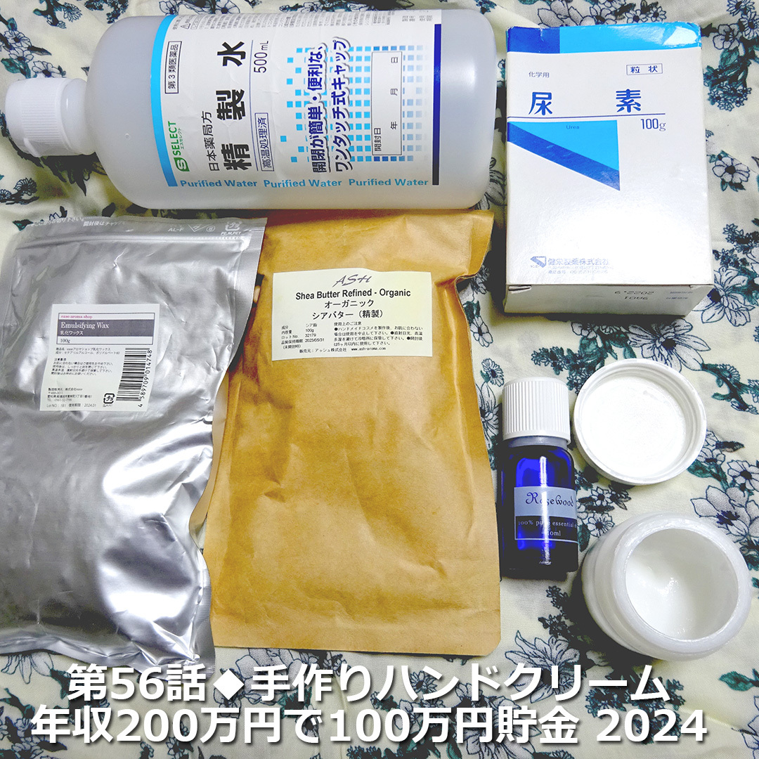 乳液と同じような作り方で、シアバターと尿素が入っているのが違うところ。