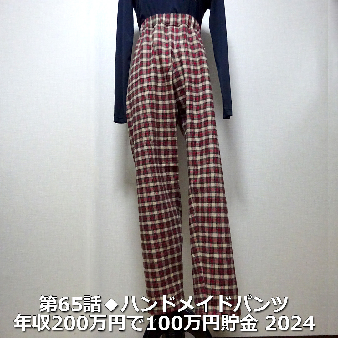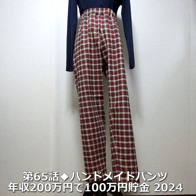 しおりを挟むすり切れたソフトジーンズの型を元に作った、先細りだけどゆったりしたパンツを作った。