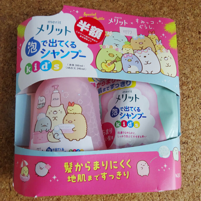 シャンプーは、全身を洗える「リンスインシャンプー マーアンドミー ラテ」で間に合っているのだけれど(第95話◆節約にお勧めリンスインシャンプー)、老親が「メリット 泡で出てくるシャンプーキッズ」を使っていたので、セットが半額ならと買った。