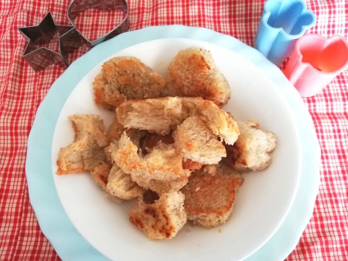 *phot プラスチックの型は粘土用。型抜きしなくても良いが、食パンが大きいと油を吸い過ぎ、ムラが出来ると思います。カリカリなうちに食べましょう。