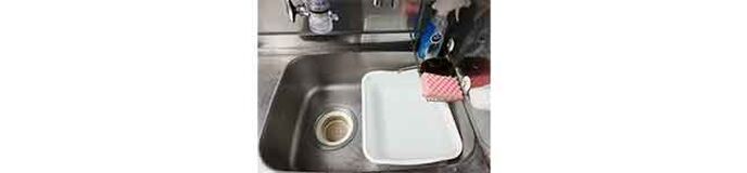 洗い桶を蛇口の下に移動し、食器についた洗剤を水で洗い流すと、下にある他の食器の泡も同時に消えるから、すすぎが早く終わり、水道使用量が減る。