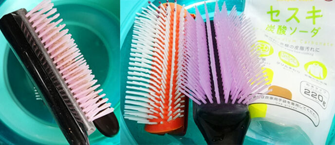 しかし、汚れは落ちないからヘアコームでこすったり、ティッシュで拭いたり、シャンプー時に使ってみたりしていたが、セスキソーダが簡単に悩みを解決してくれた。家に重曹が無いので、よりアルカリ性の強い物で試してみた次第。