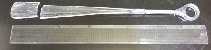 厚みがあり、もっと薄くしなやかな弾力性があったら曲がるだけで済んだかもしれない。