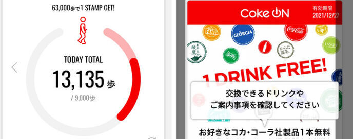 と、結局Google Fitで落ち着いていたけれど、「Coke ON」はいつの間にかスタンプが貯まり、1本無料チケットが発行されていた。かれこれ、1年…