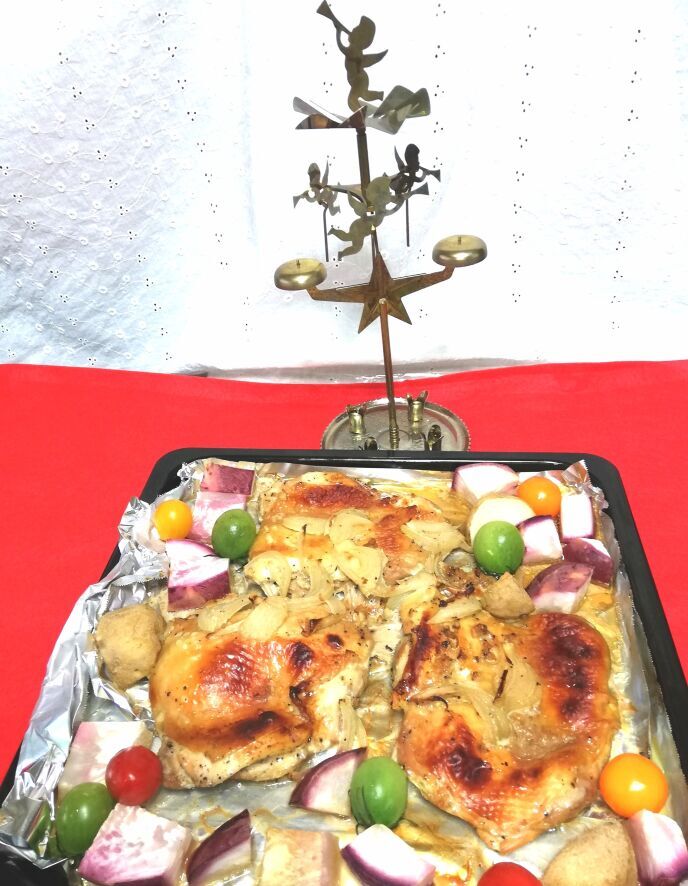 賃貸低収入独女のローストチキンは、このプレートで500円程度です。(鶏もも肉が3つなので訂正)