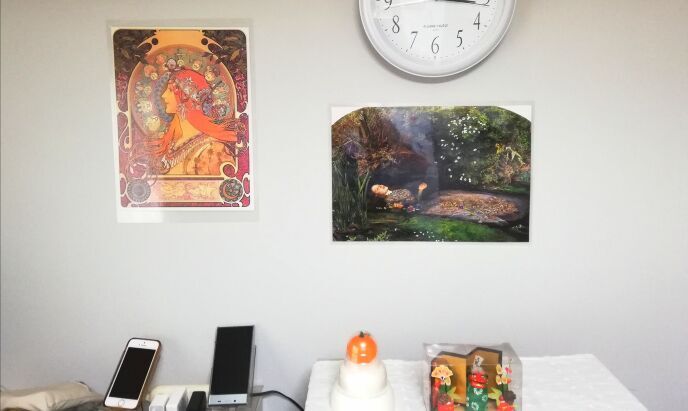 賃貸低収入独女の殺風景な壁の今年のパウチ絵画は、ミュシャとジョン・エヴァレット・ミレー。ゴッホやクリムトも好きです、シュールレアリスムはもっと好きです。