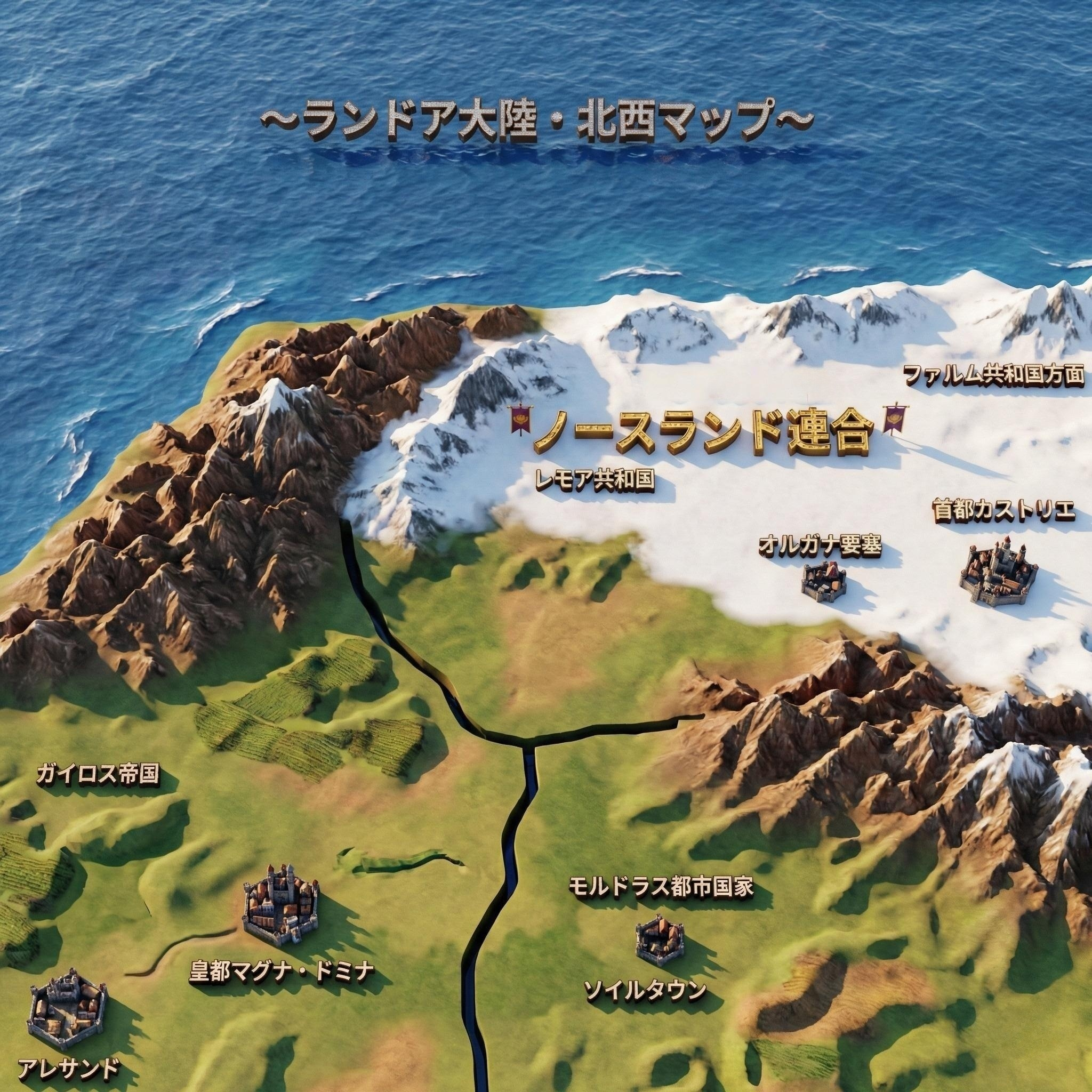 (恐らく中央のファーレン王国で魔王とぶつかることになる。北部を押さえれば北と西から侵攻できるな)