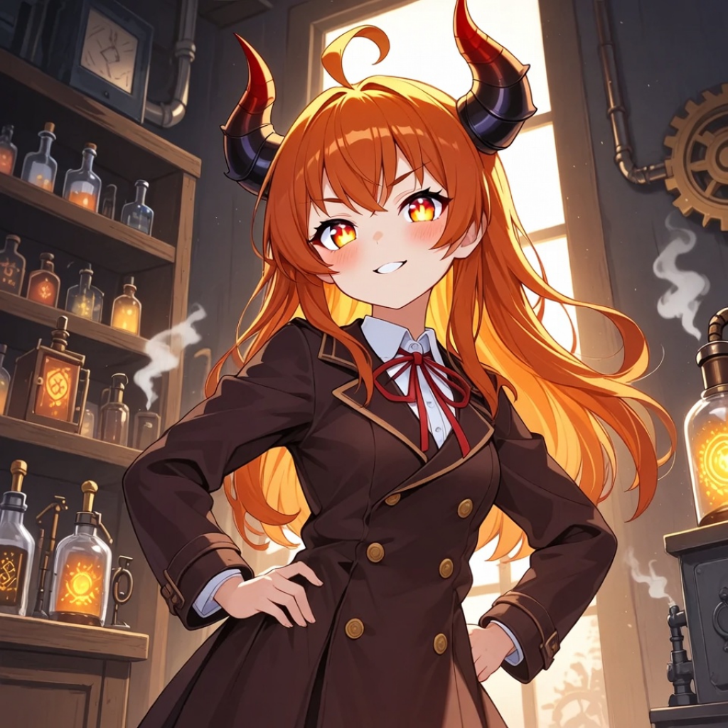 シャーロットが勢いよく扉を開け放つ。部屋の中は、床に正体不明の部品が散乱し、本や資料が山のように積まれていた。壁や天井に至るまで、爆発の名残で煤けて黒く変色している。