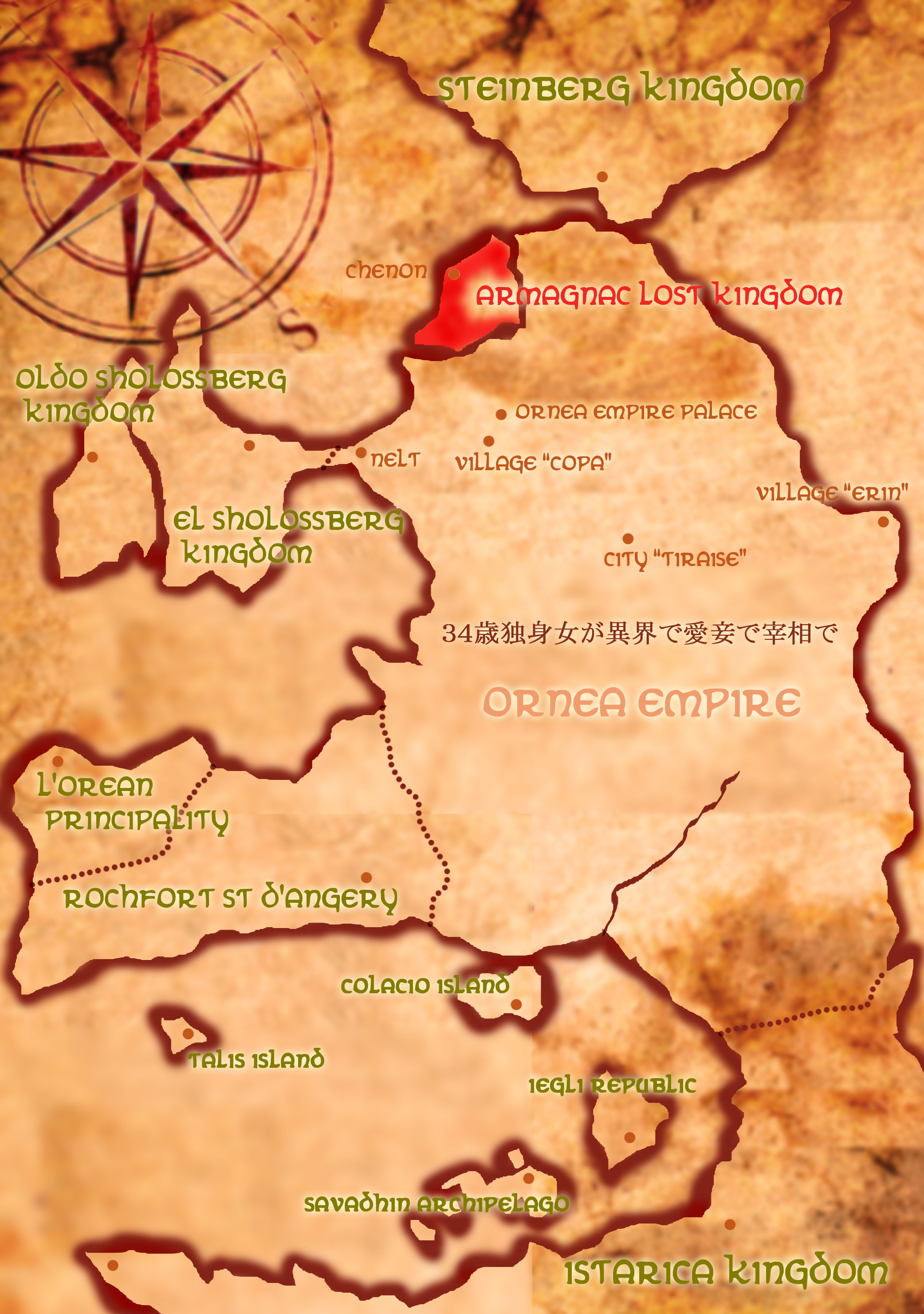 この世界に転生したナオ。しかし、その身体はスタインベルグ王国ブラハのハトコであり、十数年前のオルネア帝国の侵略戦争で滅亡した国、アルマニャック王国の第一王女マルゴ・アルマニャック。