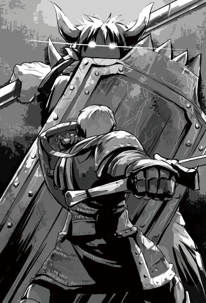 できれば手駒にしたいと思ったので、止めに実行しようと思っていた魔術の連続爆撃による殲滅は一先ず取り止め、タワーシールドを構えたオガ吉くん率いる重武装部隊《アンガー》を坂の上から進撃させる。