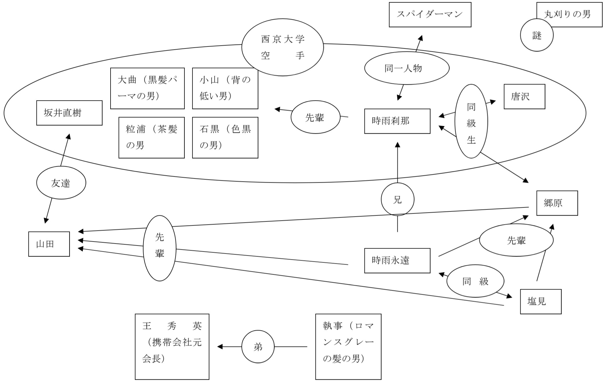 刹那は西京大学空手部の小山(背の低い男)、粒浦(茶髪の男)、大曲(黒髪パーマの男)、石黒(色黒の男)からリンチを受け、唐沢が身を挺して助ける。