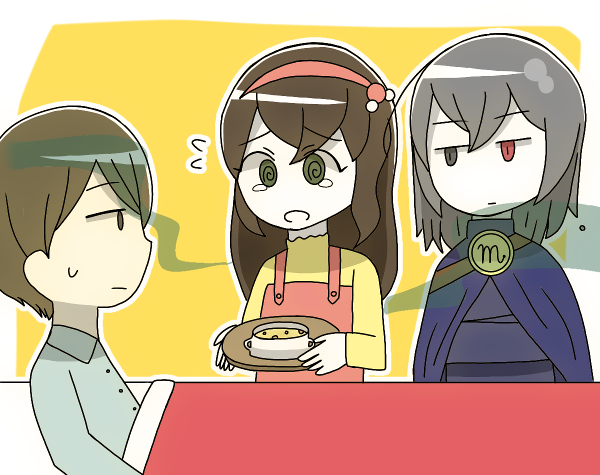 水銀が扉を開くと、その向こうから女性が顔を出した。そこに立っていたのはお手伝いさんのようにエプロンを着た茶髪の女性だった。彼女の持つお盆には暖かそうなシチューがのっていた。それを見て、自分のお腹がぐうとなるのがわかった。