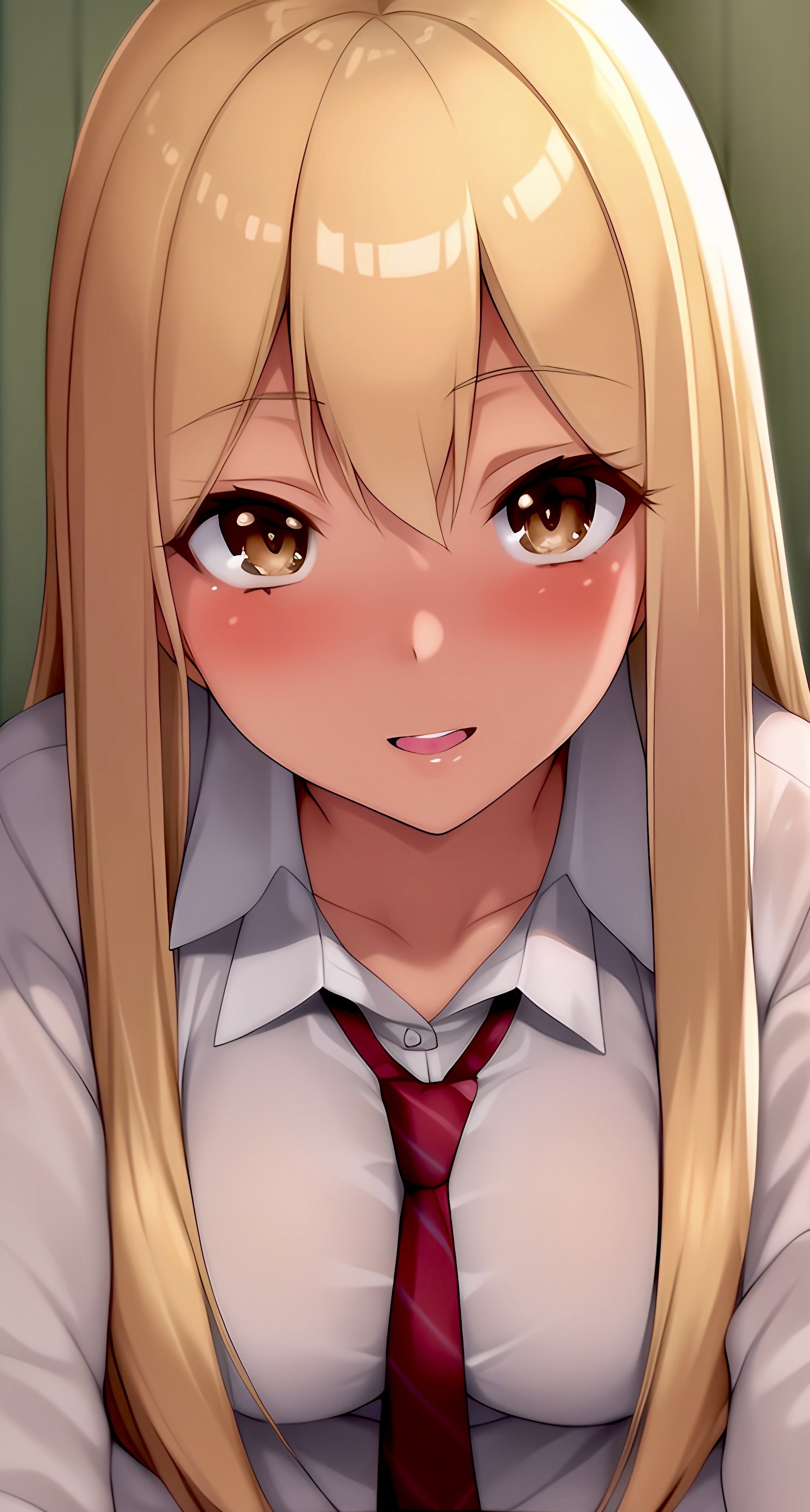 よもぎは小麦色の健康的な肌に、長い金髪で、手足が長い。スポーツをやってそうな雰囲気だ。かなりミニスカで、片足を立てているのでパンツが見えそうだ。