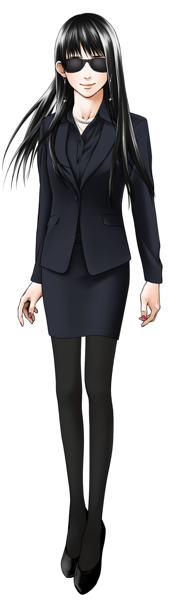 真っ黒なスーツに真っ黒なシャツに身を包み、漆黒の長髪を備えた女性。