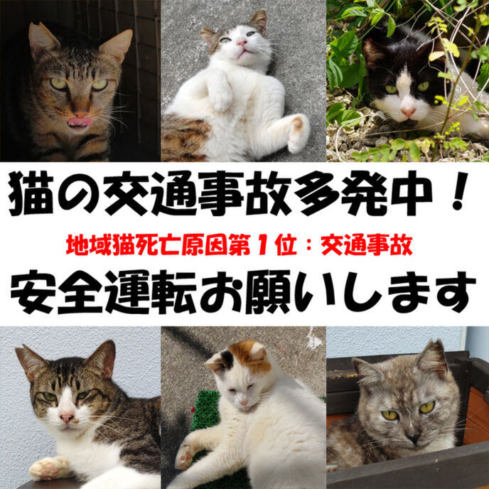 屋外で暮らす猫たちの死亡原因トップは交通事故です。