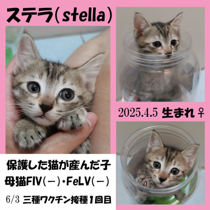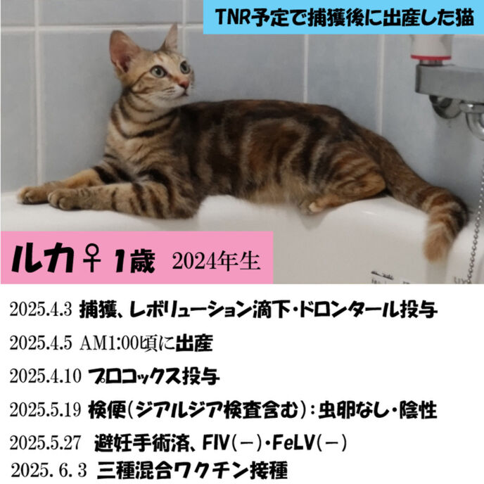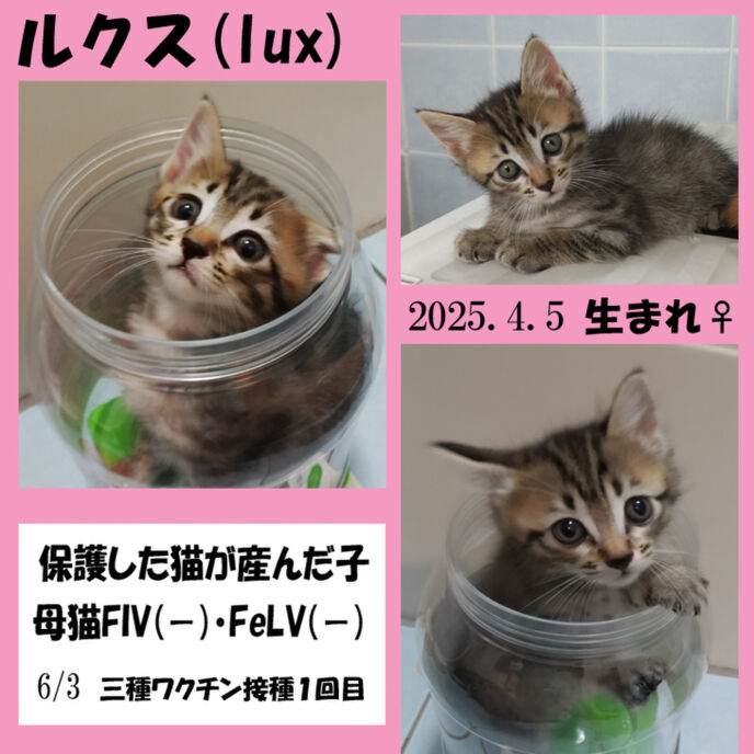 しおりを挟む2025.4.5に出産したスリゴロ猫「ルカ」、6/3に三種混合ワクチンを接種しました。