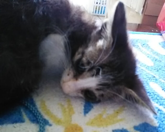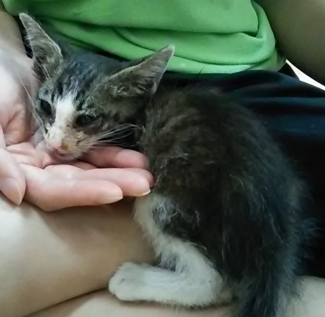 それで母猫に育児放棄されて、カラスの餌食になりかけたんだと思う。