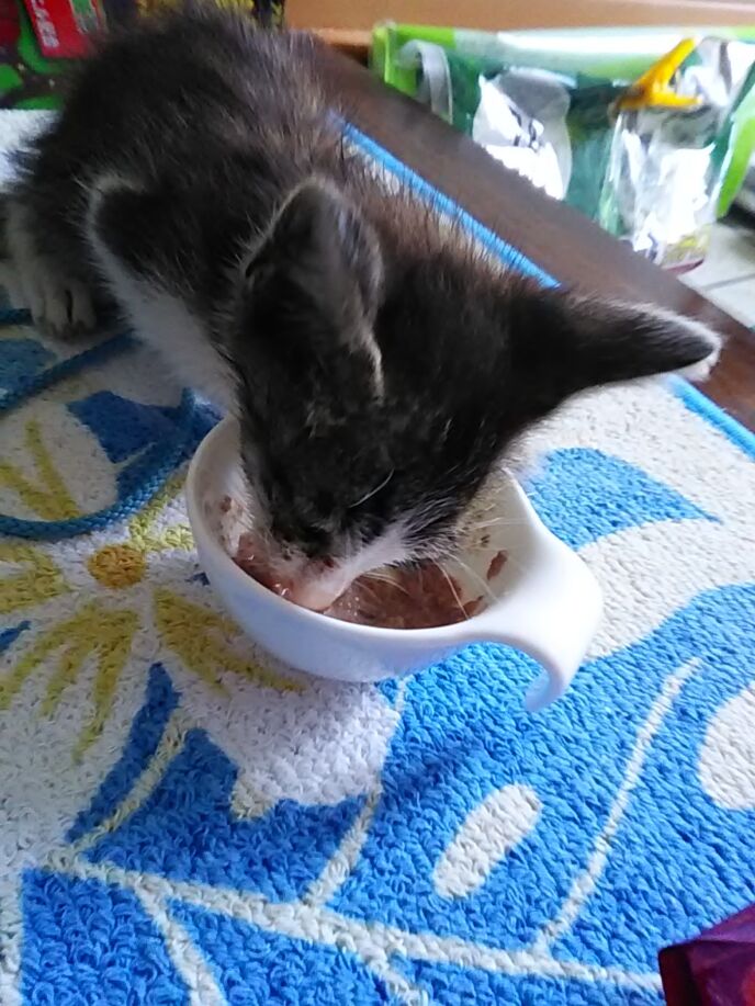 ウエットフードを自力で食べられる年頃だった。