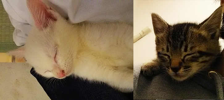 肩に乗って眠る仔猫は、この子たち以外に今のところ遭遇したことがない。