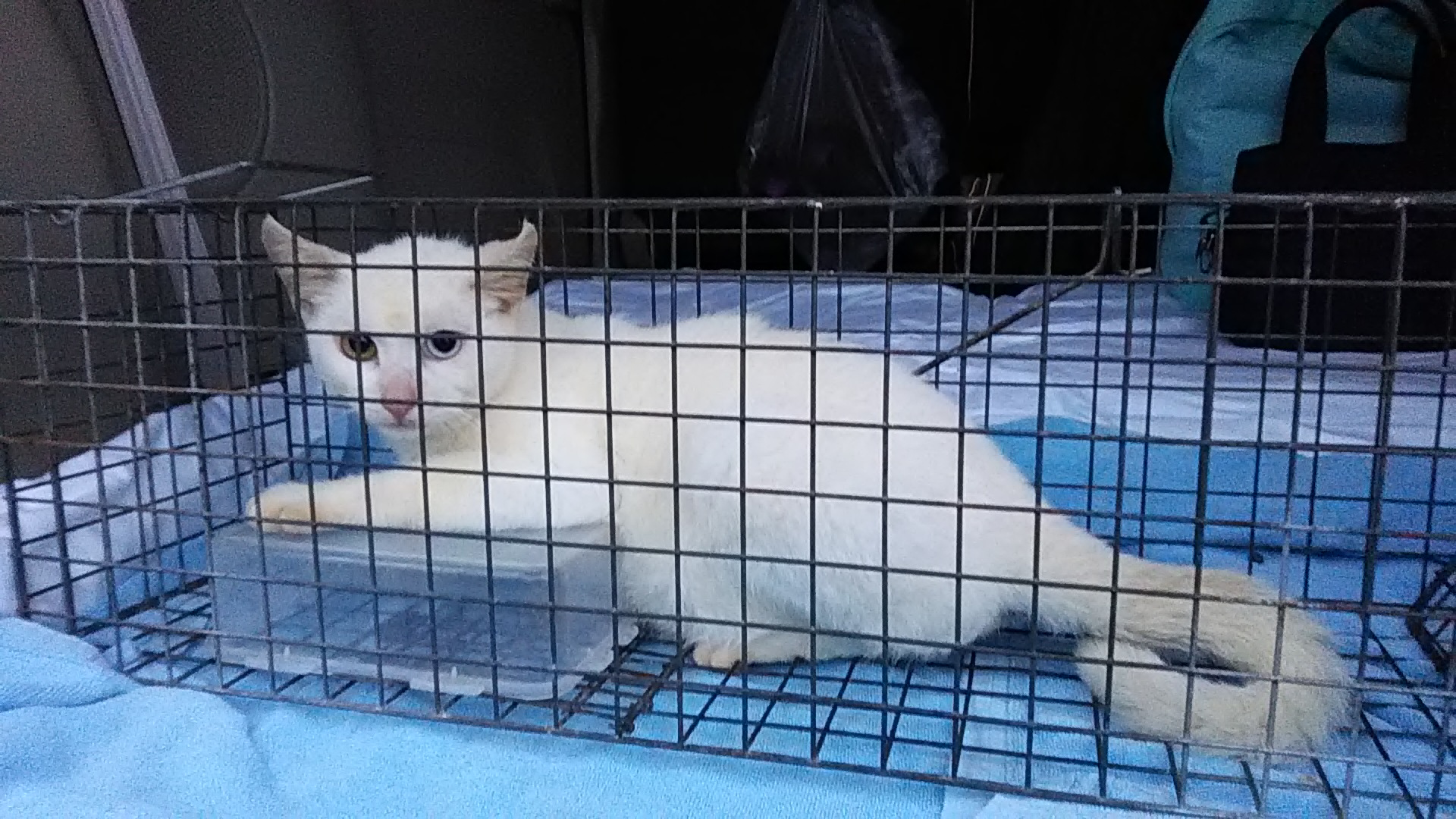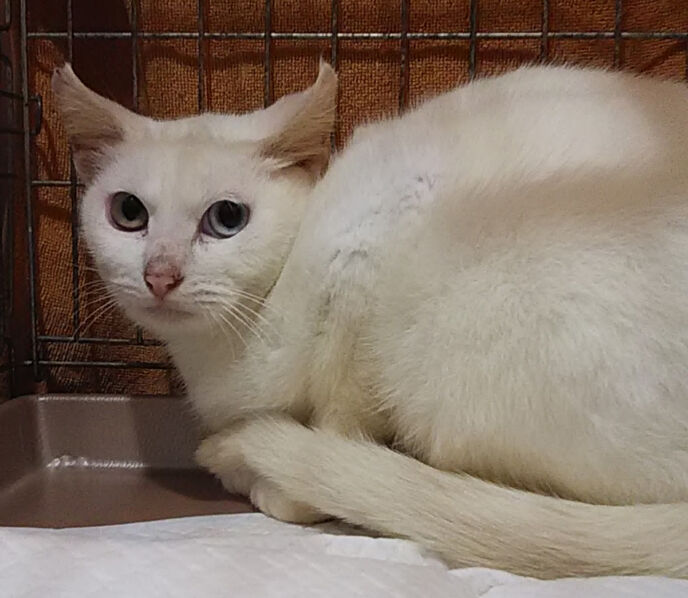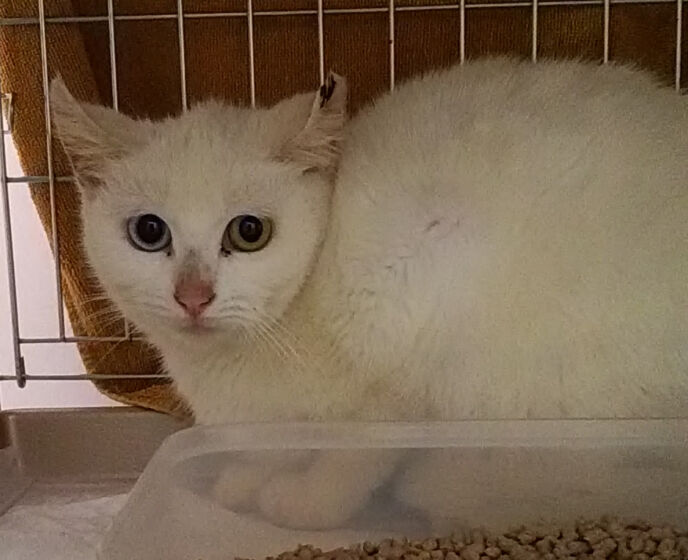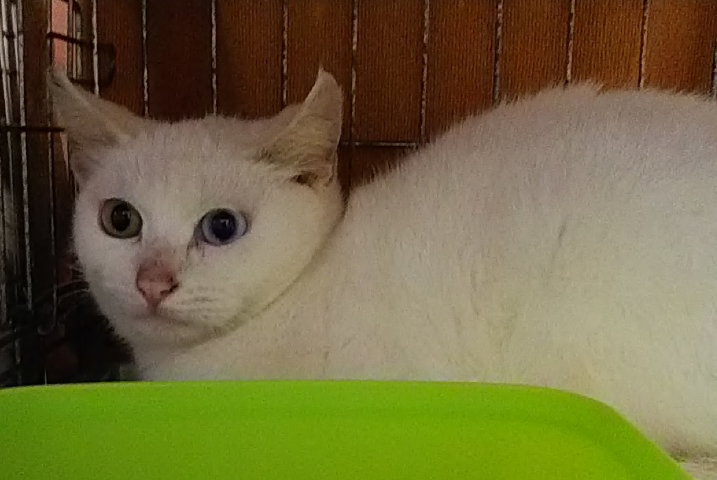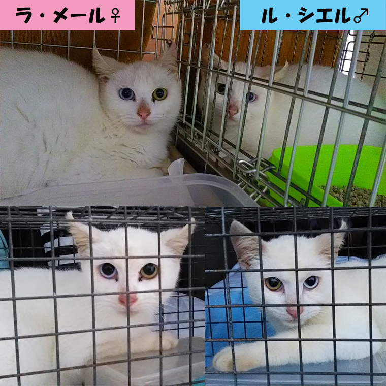 捕獲器で捕まえた猫の中にいたのが、オッドアイの白猫兄妹。