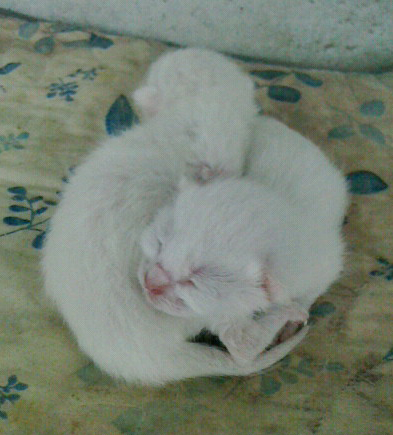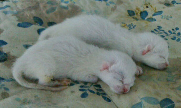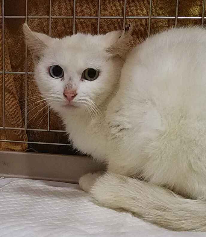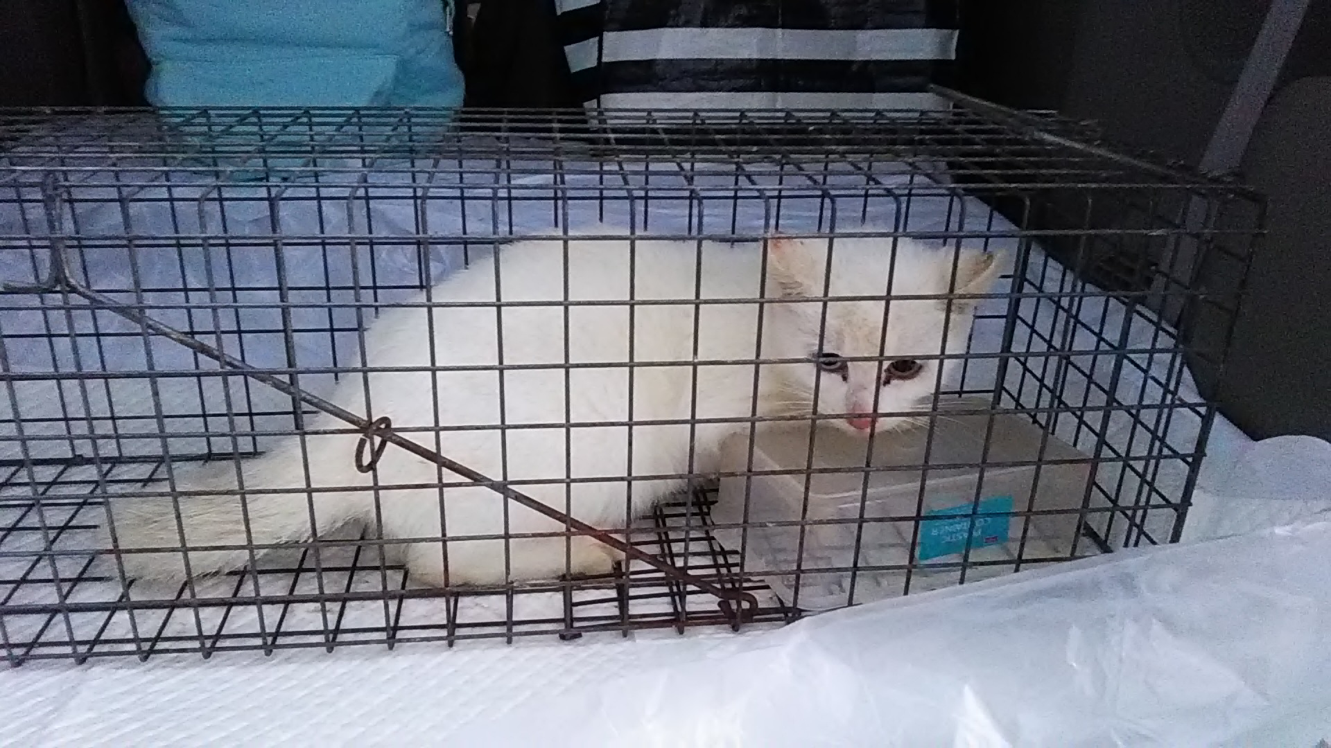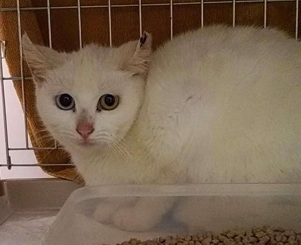 捕獲器で捕まえた猫の中にいたのが、オッドアイの白猫兄妹。