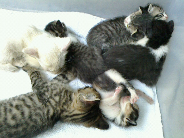まだ目が開いていない、生まれて間もない仔猫たち。