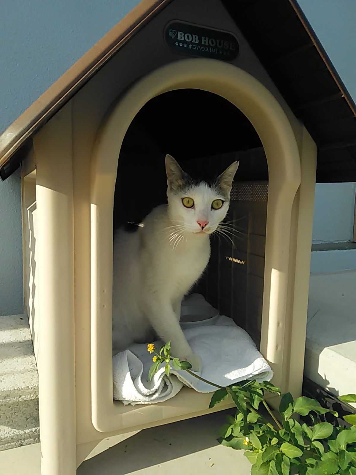 我が家の玄関前に居着いたときは、前から通って来ていた他の猫にパンチを浴びせてゴハンを奪った。