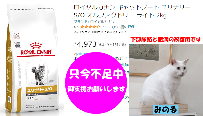 現在は下部尿路ケアフードを食べている。