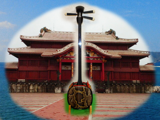 三線は音を出す胴の部分にニシキヘビの皮を張り、胴の尻から棹の先に向けて3本の弦を張り渡し、弦を弾いて鳴らす楽器だ。