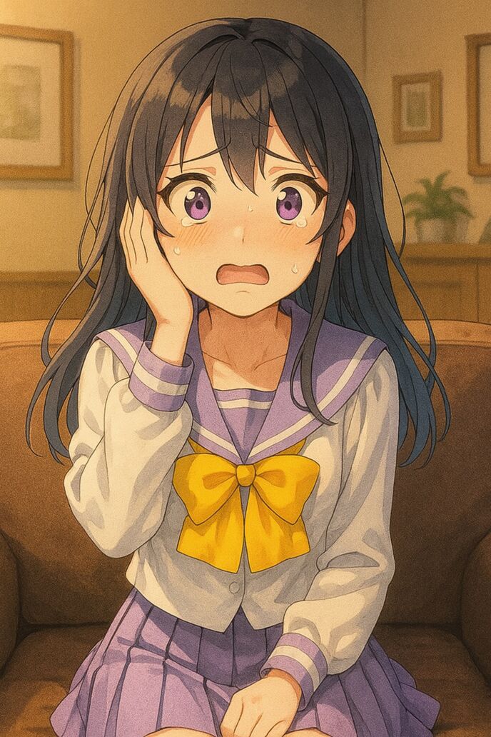 もう鮎美はパニックになっていて、あまり話を聴いていない。ソファの上でガタガタと震えて、冷や汗と涙を流している。