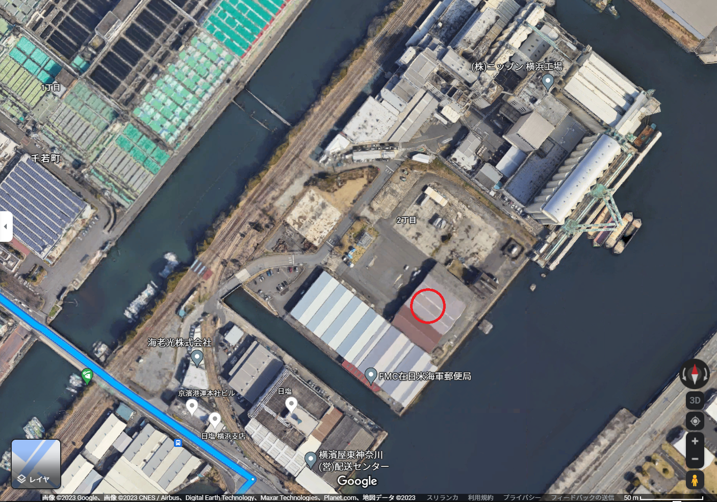 だが、村雨橋、千鳥橋、瑞穂鉄橋には、それぞれに米軍のMPが警備についているはずだ。そこに車で乗り付けるわけにはいかない。米軍にバレないルートというと、二車線の竜宮橋を渡って、星野町の東高島貨物駅から2つ目の埋立地につながる貨物の鉄橋を渡れば、米軍に見つかる恐れはまずないはずだ。三井倉庫前から貨物線沿いに200m 行くと飛び地になっている海軍所管の海軍艦船乗組員への軍事郵便の配達を行う郵便局地区の飛び地の108棟があるはず。軍事郵便倉庫なので警備は普通警備はたまの見回り程度だ。ただし、今回は台湾の連中が米軍兵士とグルになっているとすると、米軍兵士の連中が付近にいて、倉庫の中の誘拐された女性たちを見張っているだろう。