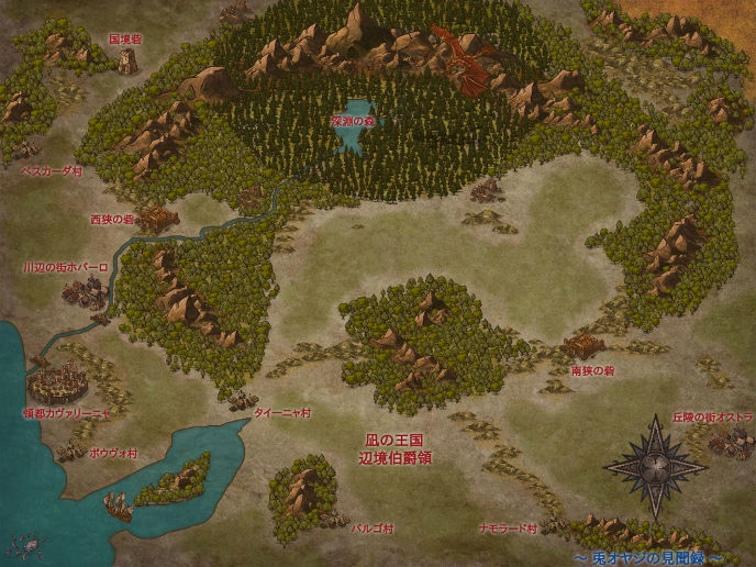 ああ、俺たちは今川辺の街から徒歩で1日のとこにある森に来てる。ここまでは河を渡らなきゃいけねえんだが、見事な5連アーチ型の平石橋が架かってんのさ。