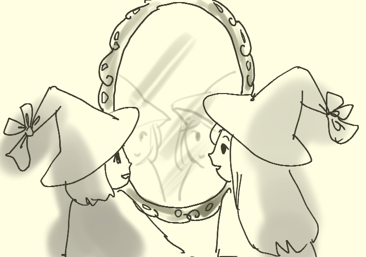チェストの上に乗っていた空色で大きなつばのついた三角帽子を手にしたふたりは、さっそく頭に乗せてみる。