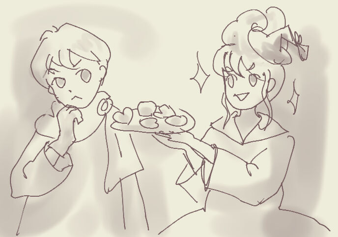 ジールは、イザベスに気圧されるように、クッキーを一つ手に取ったが、何かが気になったようで、少し眉をひそめ、後を向いてクッキーの匂いをかいで安全かどうか確かめてから、口の中に放り込んだ。
