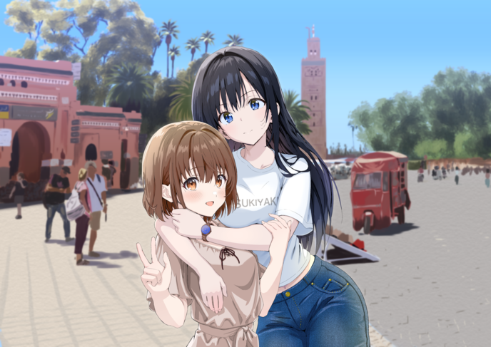 私は今、日本を遠く離れたアフリカ大陸、モロッコにあるマラケシュという街にいます。隣にいる黒髪のお姉さんは私と一緒に旅をすることになる愛生です。