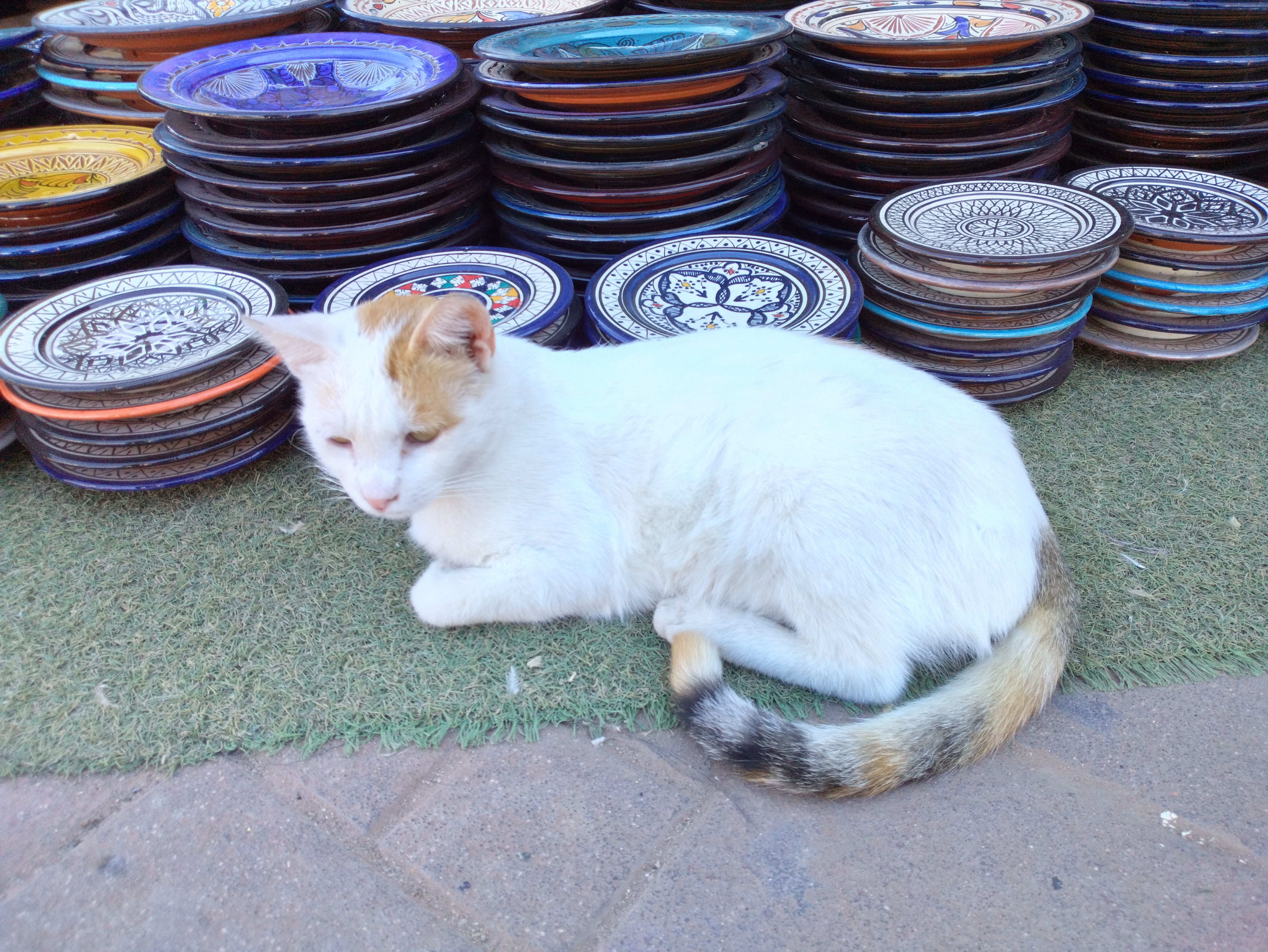 二人がスークの入り口、露店の食器屋さんで出会った猫さんです。