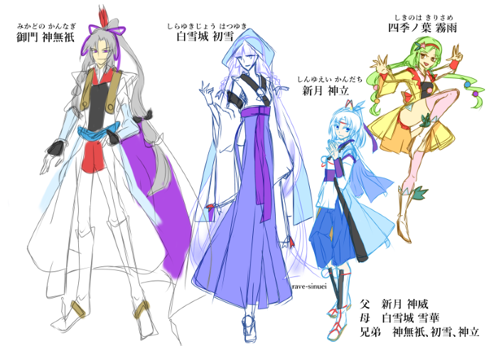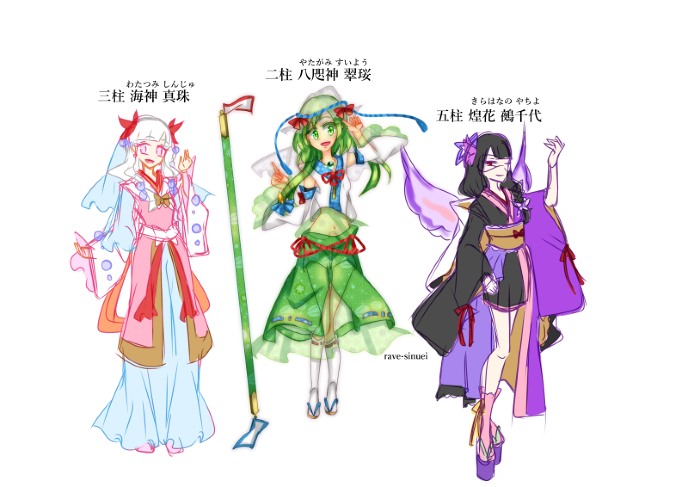 神無衹(かんなぎ)は月の神である七柱・十六夜初月(いざよい はつづき)の「謀反を起こしてシン・ユエイも葦原の二つを手中に治めればよいのです」という甘言に乗り、初雪(はつゆき)皇女と友である四柱・ 相模鵺鳳仙(さがみや ほうせん)を連れて都を立ったのであった…