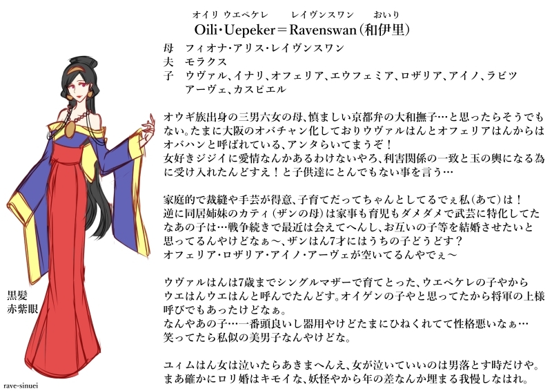 ウェンカム族の王家のトップがレイヴンスワン家、オイリ様の母上がその王女様でした。
