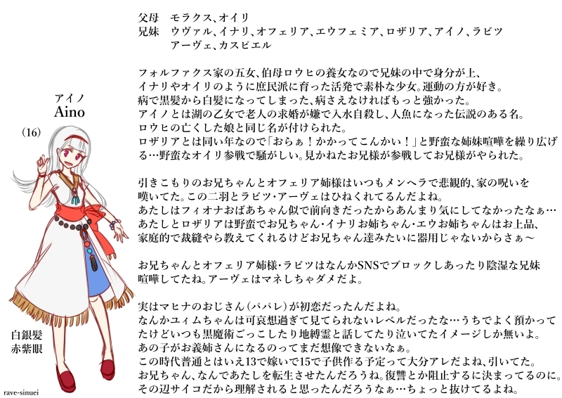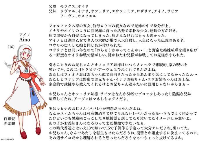 フォルファクス家は王位継承権が末席ですが、妹のアイノは父の伯母である大魔女ロウヒの養女なので兄(わたくし)より格上なんですよ。