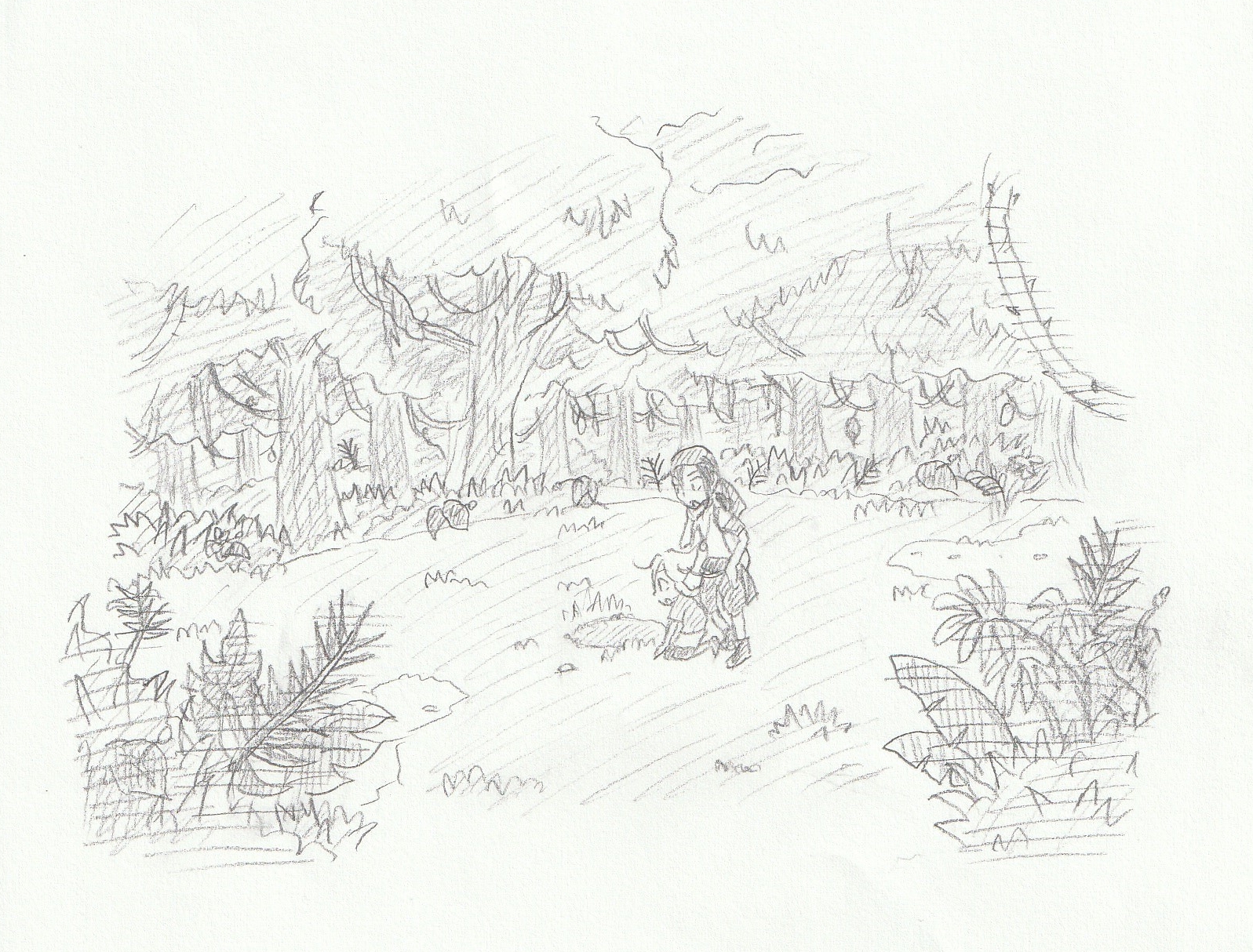 二人は森の開けたところに出る。そこには水たまりのようなものがあるだけで、先へは行けず行き止まりになっている。サルマは首をひねり、踵を返す。