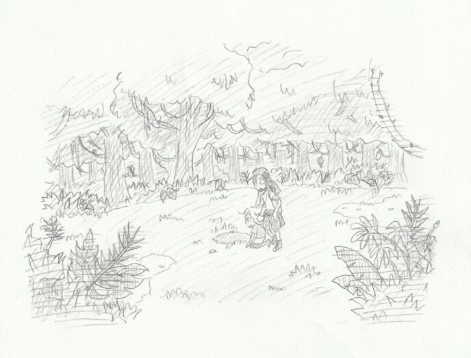 サルマは緑の生い茂った深い森の中に入っていく。アイラも慌ててサルマについていく。